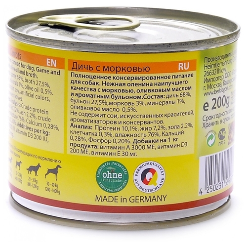 Корм для собак Berkley (0.2 кг) 1 шт. Паштет для собак #10 Дичь с морковью