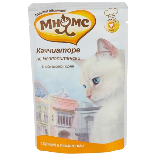 Корм для кошек Мнямс Каччиаторе по-неаполитански беззерновой, с курицей и с томатами 85 г (паштет)