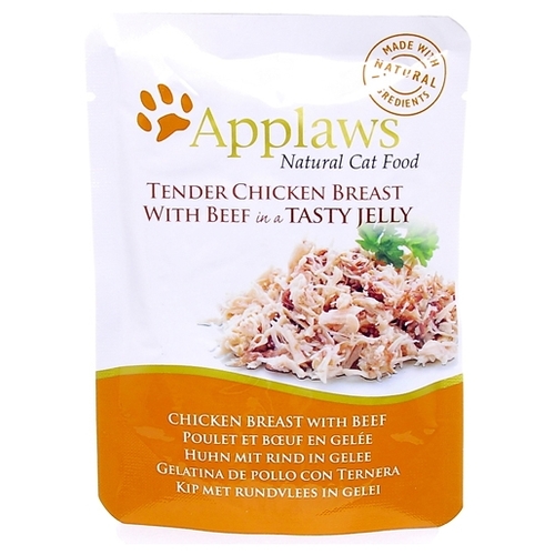 Корм для кошек Applaws беззерновой, с курицей, с говядиной 70 г (кусочки в желе)