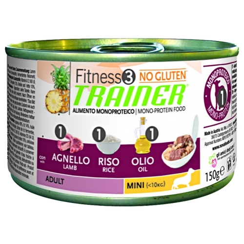 Корм для собак TRAINER (0.15 кг) 1 шт. Fitness3 No Gluten Adult Mini Lamb and Rice canned