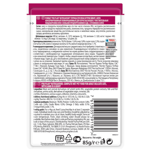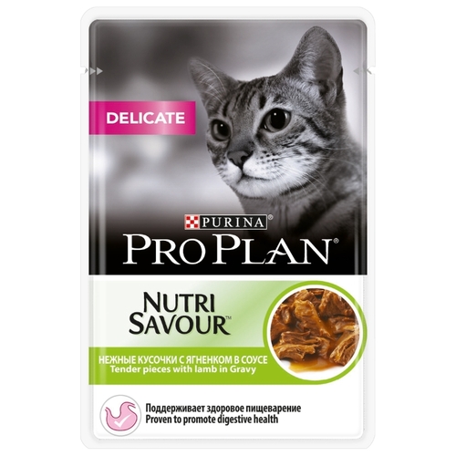 Корм для кошек Purina Pro Plan Nutrisavour Delicate беззерновой, при чувствительном пищеварении, с ягненком 85 г (кусочки в соусе)