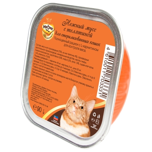 Корм для стерилизованных кошек Мнямс беззерновой, с телятиной 90 г (паштет)