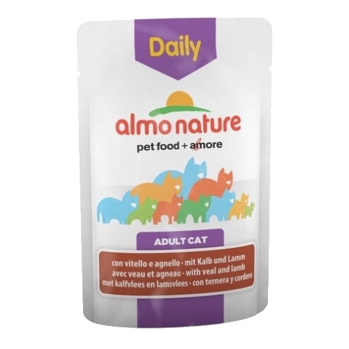Корм для кошек Almo Nature Daily Menu беззерновой, с телятиной, с ягненком 70 г (кусочки в желе)