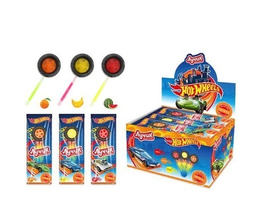 Карамель леденцовая на светящейся палочке со вкусом арбуза, банана, апельсина, 30 шт по 10 г.