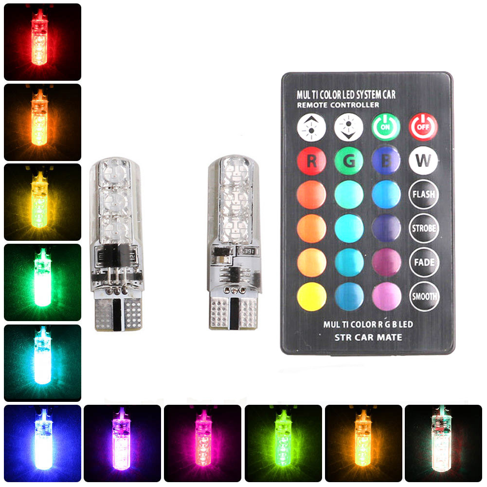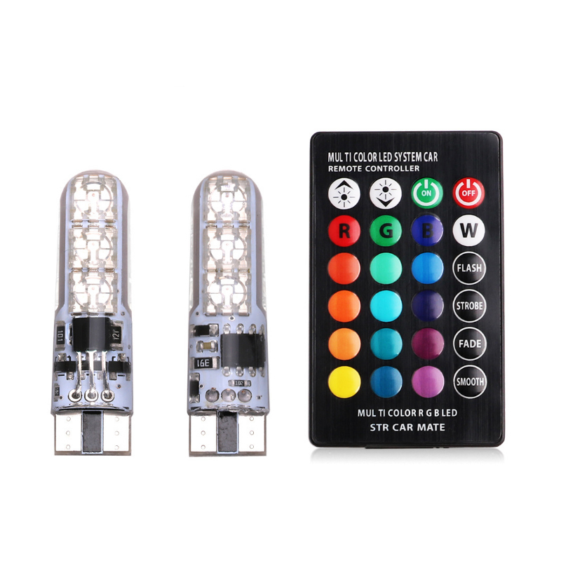 Лампа светодиодная T10 W5W RGB с пультом управления в салон автомобиля