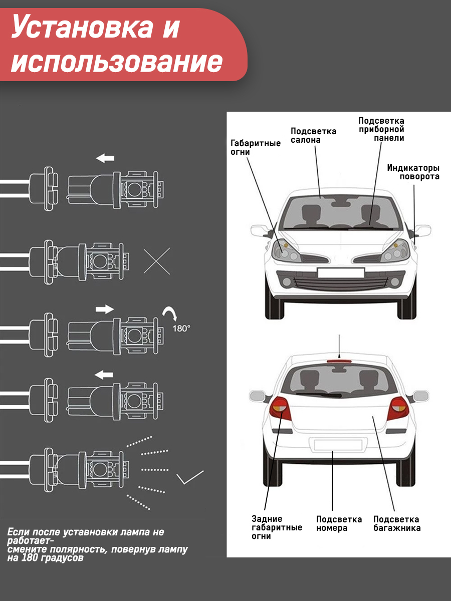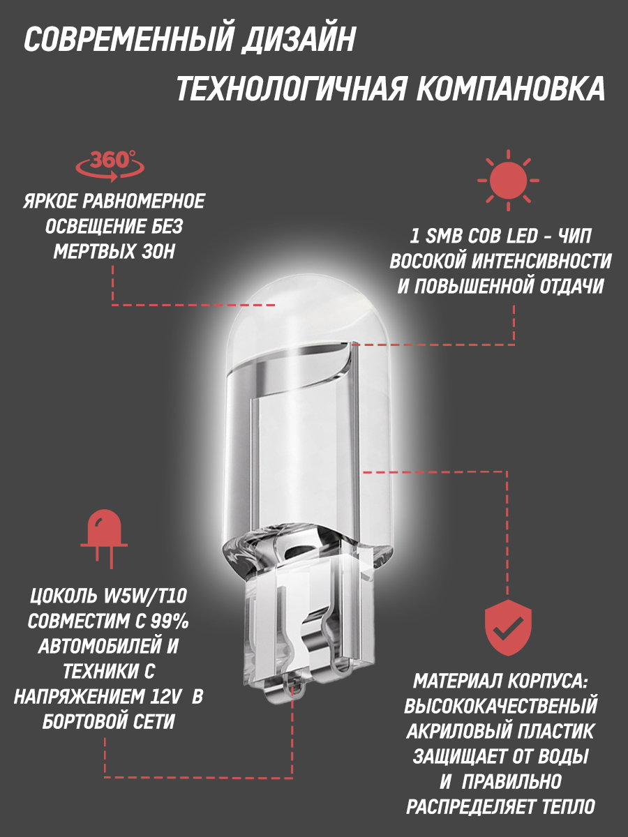 UnitLED / Лампа автомобильная светодиодная 2 шт. W5W / T10, белый