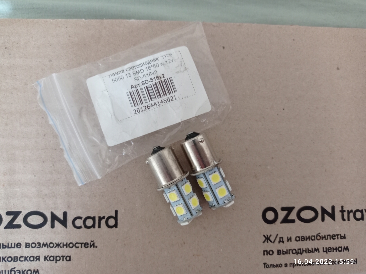 Лампа светодиодная габаритная SD-516 P21/1156 5050 13 SMD 2.0W 16x50MM 12V 2 лампы
