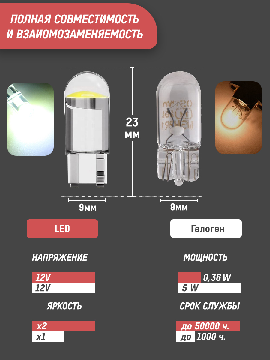 Галогенная лампа T10 W5W, 5 Вт, 12 В, набор 4 шт