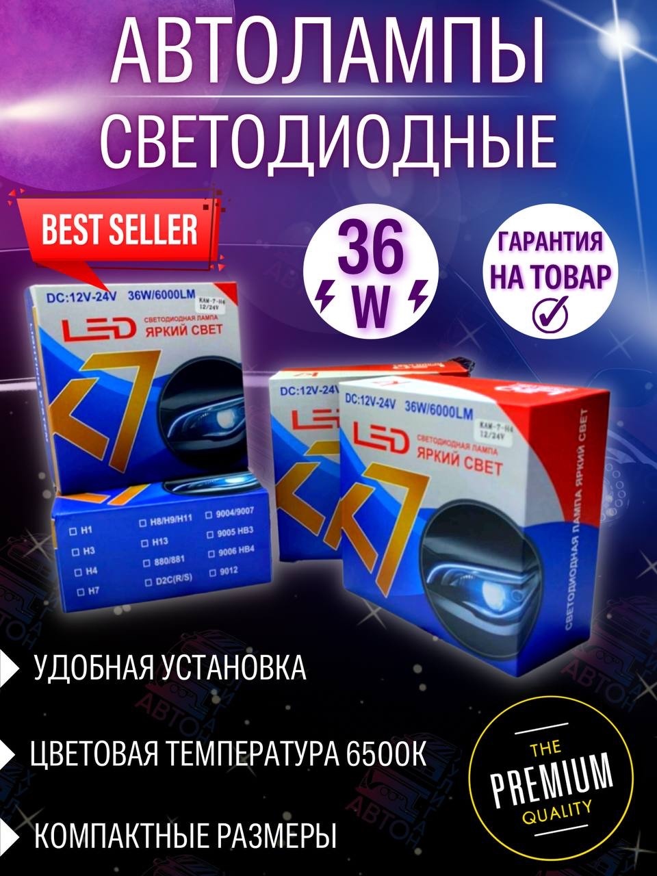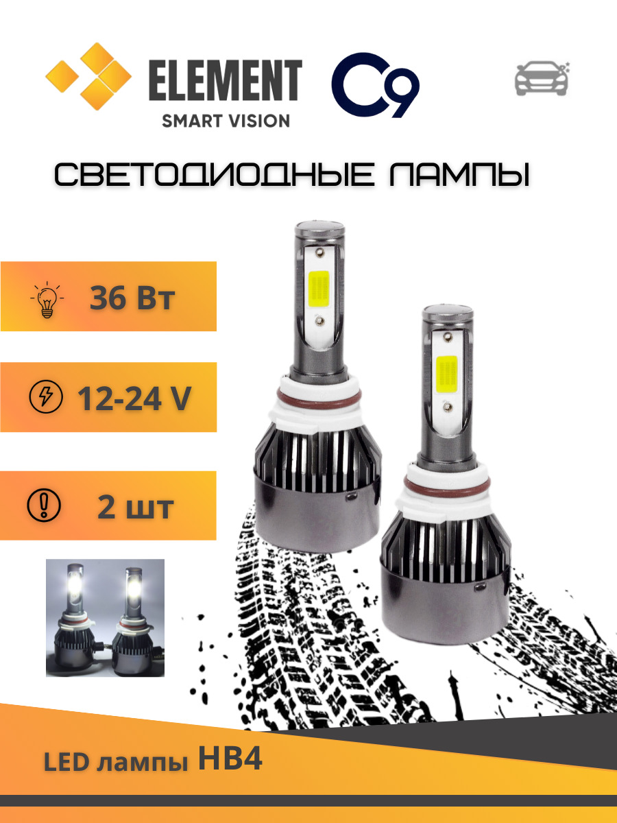 Лампа светодиодная LED Super Headlight С9 HB4 (9006) 8-48V. 36W. 6000K. 6000Lm. 2шт.00