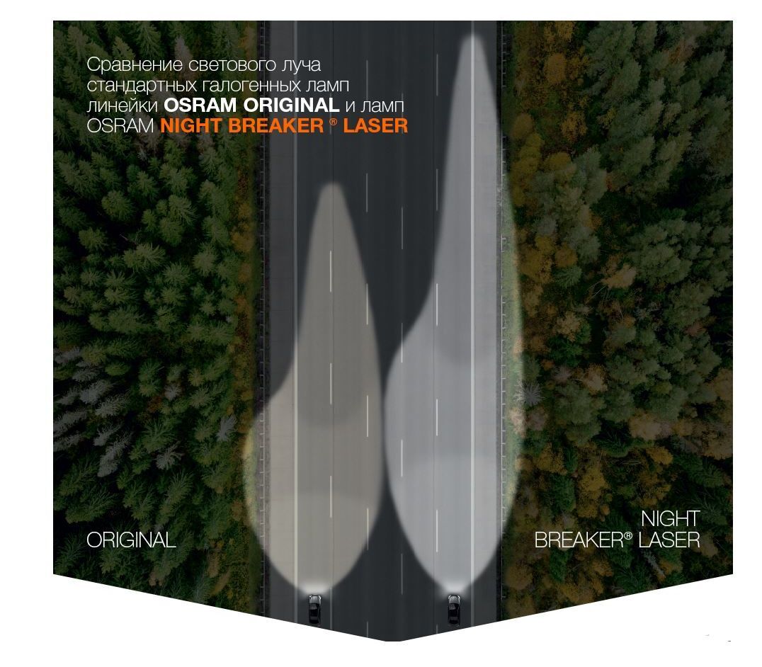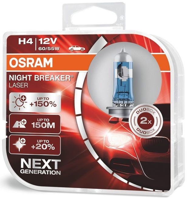 Лампа автомобильная OSRAM H4 12V 60/55W NIGHT BREAKER LASER +150% 64193NL (2шт)