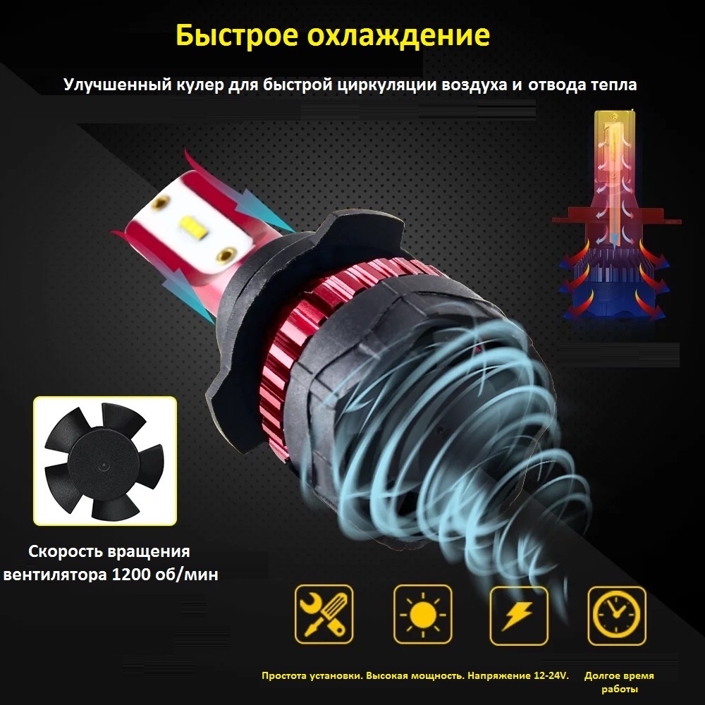 LED лампы C6 3800LM-6000K-36W/H27 (880,881) (со встроенным вентилятором)