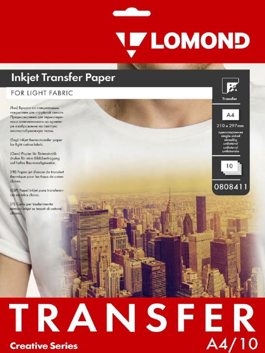 0808411 бумага LOMOND (A4, 140гр, 10л) термоперев. светлые ткани, для струйных