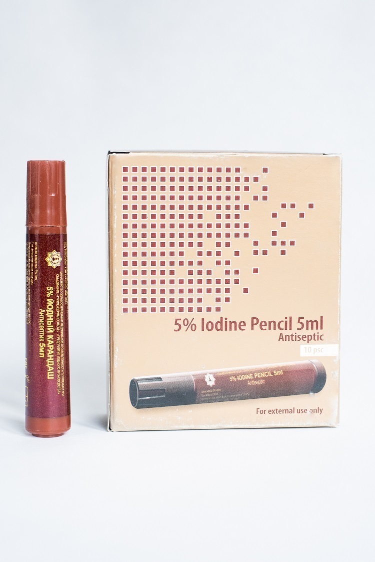 БЕЗ РЕЦЕПТА ВРАЧА. УДОБНАЯ ФОРМА. НЕ ПАЧКАЕТ РУКИ! Йод карандаш (маркер) - 5 мл (спиртовой раствор йода 5%). Устройство полимерное с твердым пористым стержнем для хранения и нанесения спиртового раствора йода. Рекомендации к применению: инфекционно-воспал