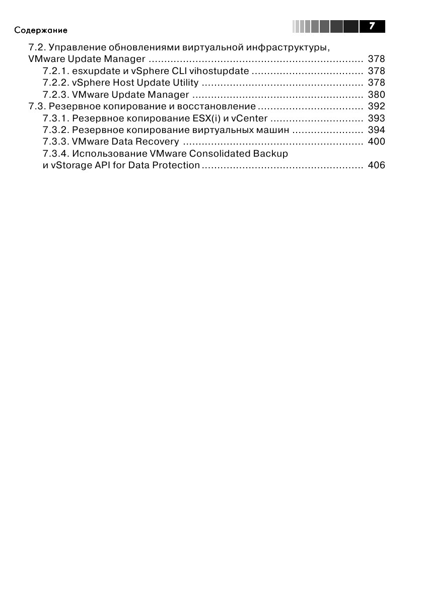 Книга посвящена работе с семейством продуктов VMware vSphere 4. В ней рассмотрены установка vSphere, настройка сети виртуальной инфраструктуры, системы хранения данных, виртуальные машины, управление ресурсами сервера, защита данных в виртуальных машинах.