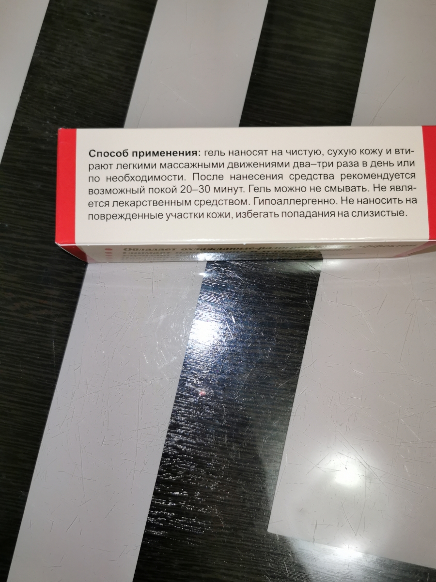 Способ применениягель наносят на чистую, сухую кожу и втирают легкими массажными движениями два-три раза в день или по необходимости. После нанесения средства рекомендуется возможный покой 20–30 минут. Гель можно не смывать