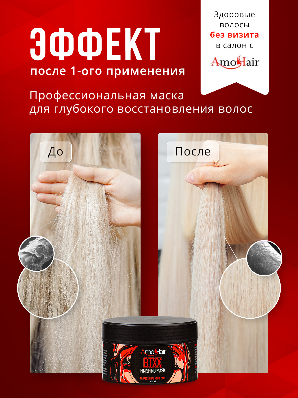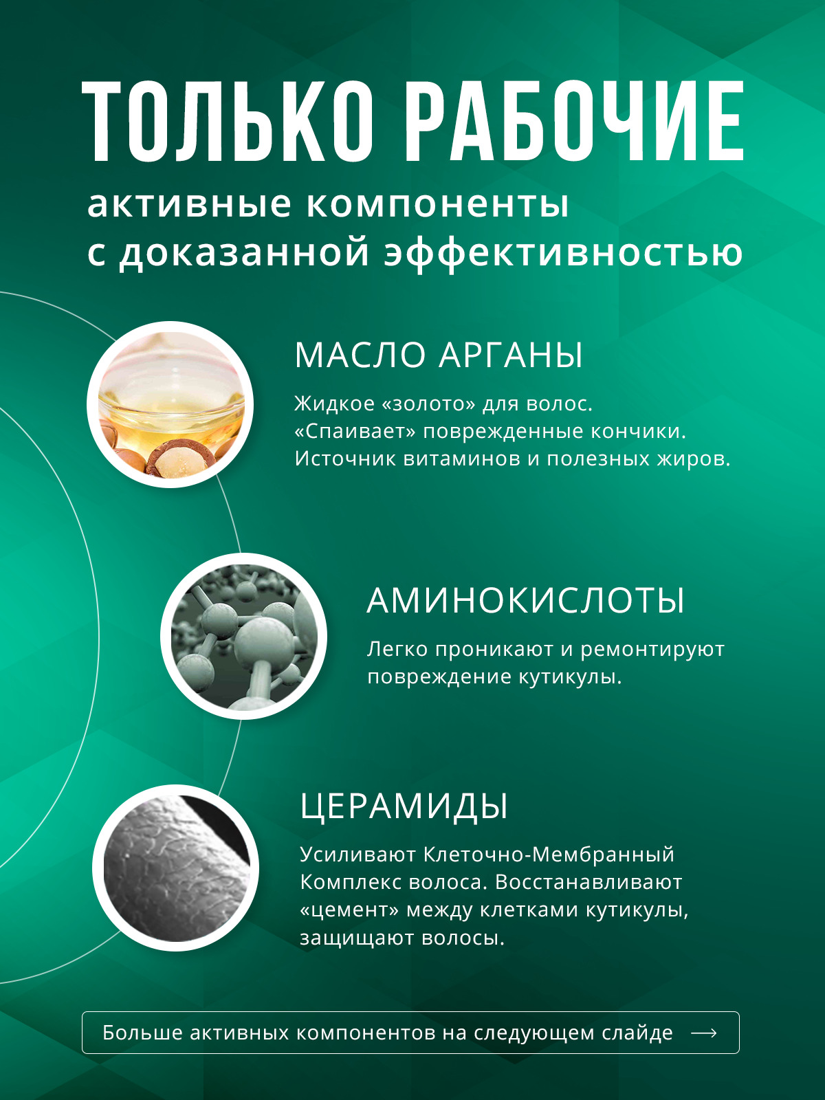 ЭффектВосстановление, Питание, Уход, Блеск, Мягкость волос, Разглаживание, Увлажнение, Укрепление, Легкость расчесывания, Против секущихся концов, Утолщение, Эластичность