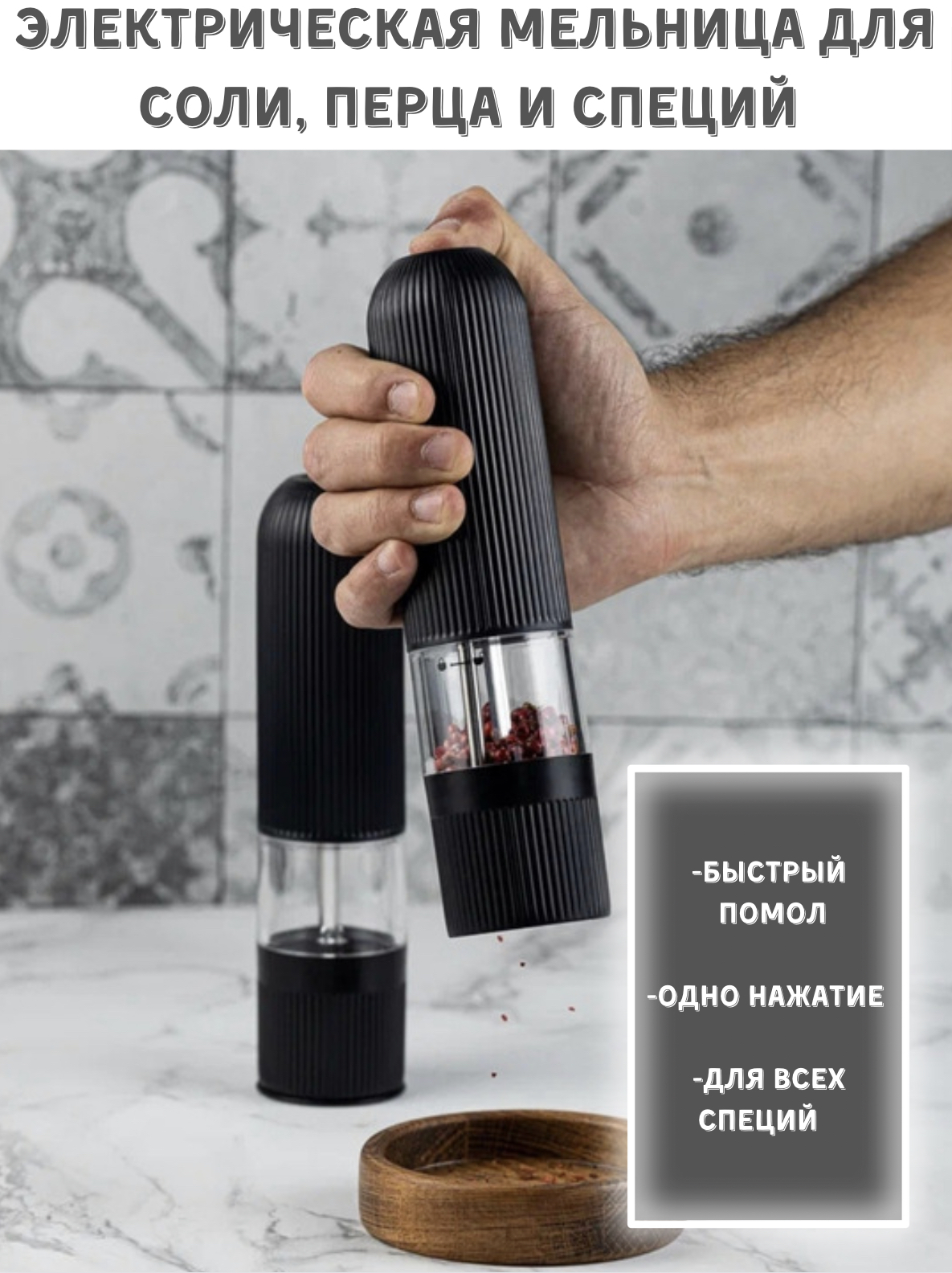 Ускорить приготовление блюд можно при помощи предложенной модели измельчителя приправ. Электрическая мельница для соли и перца позволяет тратить на приготовление душистых приправ минимум времени. Преимущество этой модели заключается в быстром приготовлени