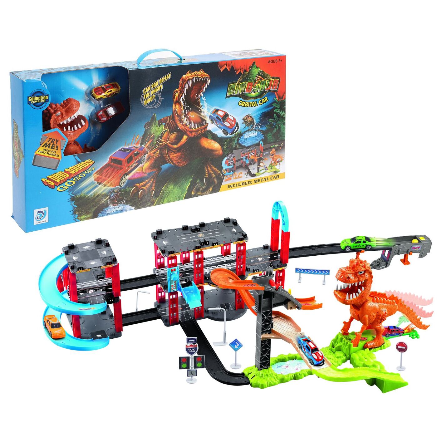 Игровой набор «Мегапаркинг» — это целый четырёхъярусный гараж и экстремальный автотрек для юных гонщиков. Ребёнок поднимет машинки на любой уровень с помощью специального лифта. А благодаря пусковому механизму транспорт можно будет разогнать, чтобы пройти