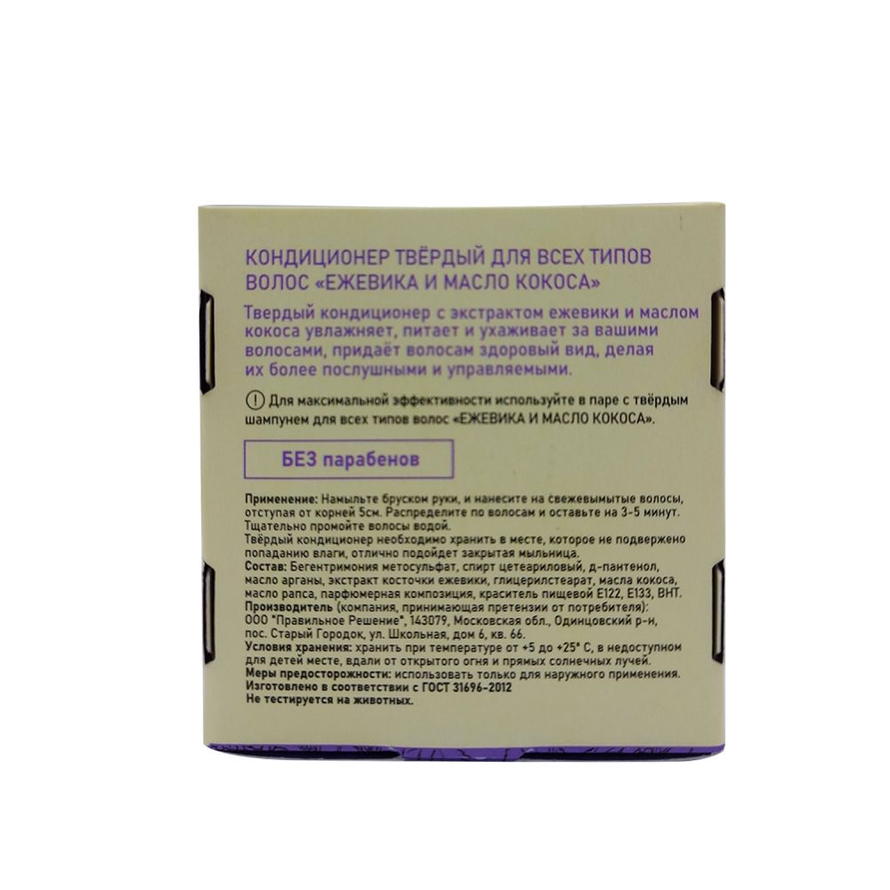 Твердый кондиционер для всех типов волос, с экстрактом ежевики и маслом кокоса, увлажняет, питает и ухаживает за вашими волосами, придаёт волосам здоровый вид, делая их более послушными и управляемыми.