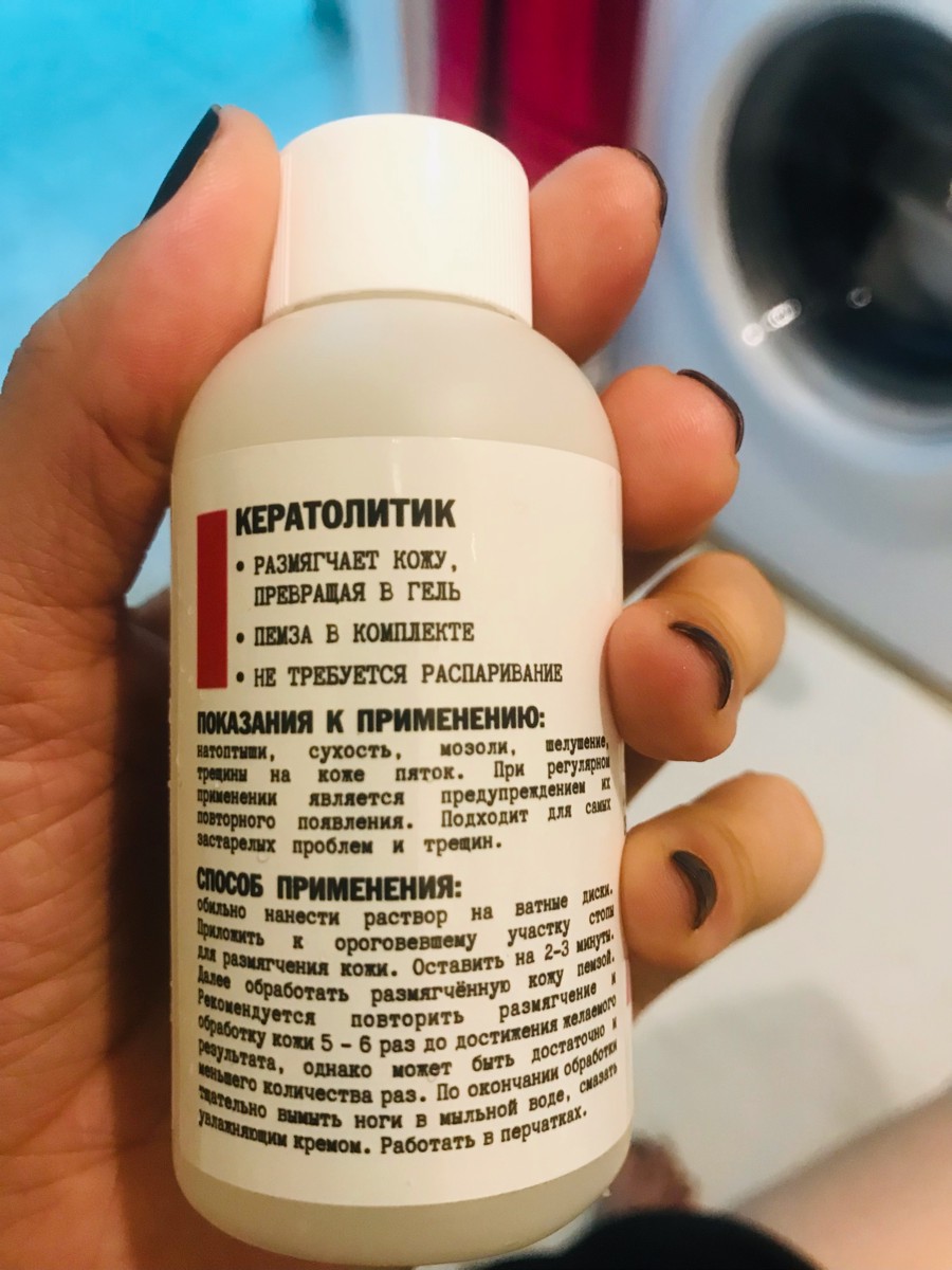 Способ применения**СПОСОБ ПРИМЕНЕНИЯ:** обильно нанести раствор на ватные диски (лучше разорвать их вдоль, чтоб стали тоньше). Приложить к ороговевшему участку стопы для размягчения кожи. Оставить на 2-3 минуты. Далее обработать размягчённую кожу пемзой круговыми движения