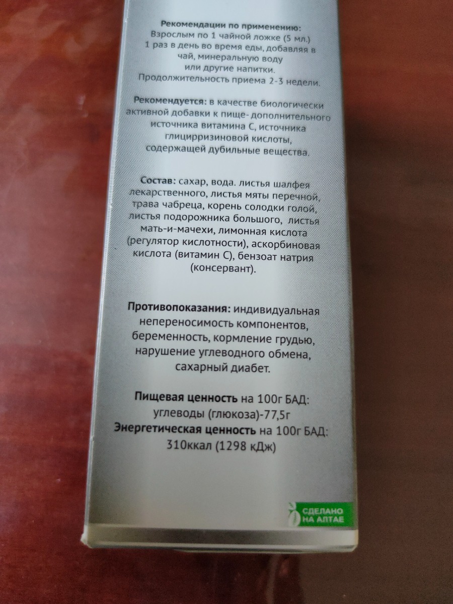 МНН/Действующее вещество:Глицирризиновая кислотаДубильные вещества Состав:сахар, шалфей лекарственный (листья), мята перечная (листья), чабрец (трава), солодка голая (корень), подорожник большой (листья), мать-и-мачеха, аскорбиновая кислота, бензоат натри