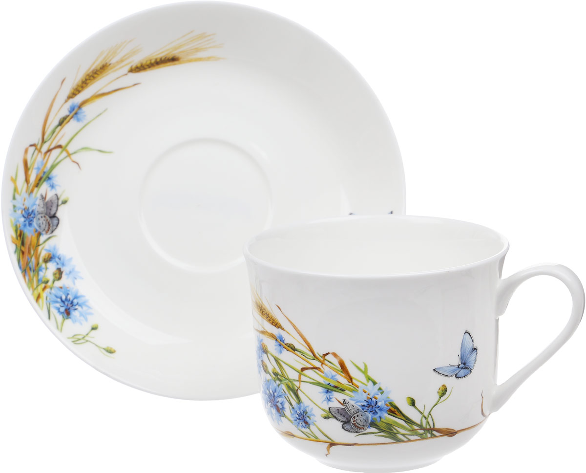 Чайная пара из костяного фарфора. Васильки. Коллекция Славянский букет . Бескрайняя ширь полей, прохлада заливных лугов и звенящая тишина пронизанных летним солнцем лесов собраны талантливыми руками русского художника в нежный букет полевых цветов. Чайна