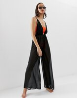 Черный пляжный комбинезон с глубоким вырезом и широкими штанинами Candypants - Черный
