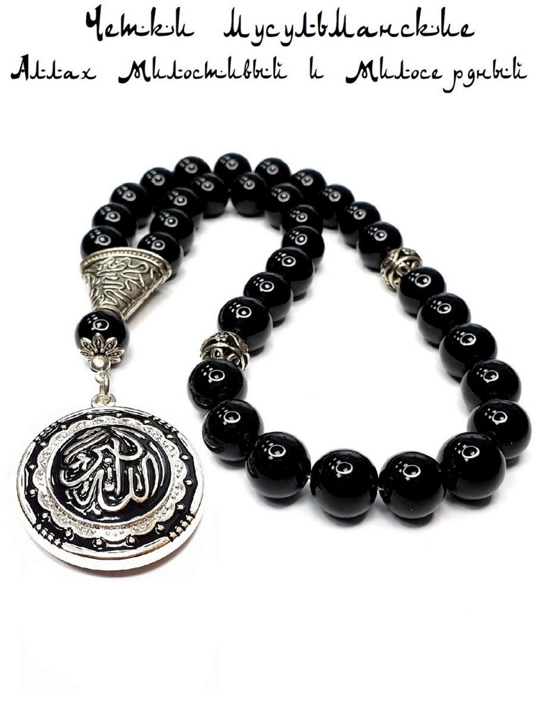 Комплектация:Четки, подарочный бархатный мешочек Описание:Четки мусульманские выполнены из агата натурального, 33 камня, с медальоном "Аллах Милостивый и Милосердный". Диаметр камня:12мм. Длина четок с медальоном:29см, Длина по окружности: 38-39см. Камни