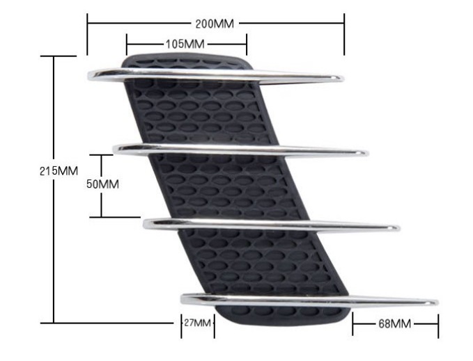 Комплектация:Накладки-жабры - 2 шт.Описание:Накладки "Жабры" для автомобиля из ударопрочного пластика. Могут быть установлены в любое место на кузове автомобиля. Придают агрессивные спортивные черты Вашему авто. Крепятся на двухсторонний скотч, который на