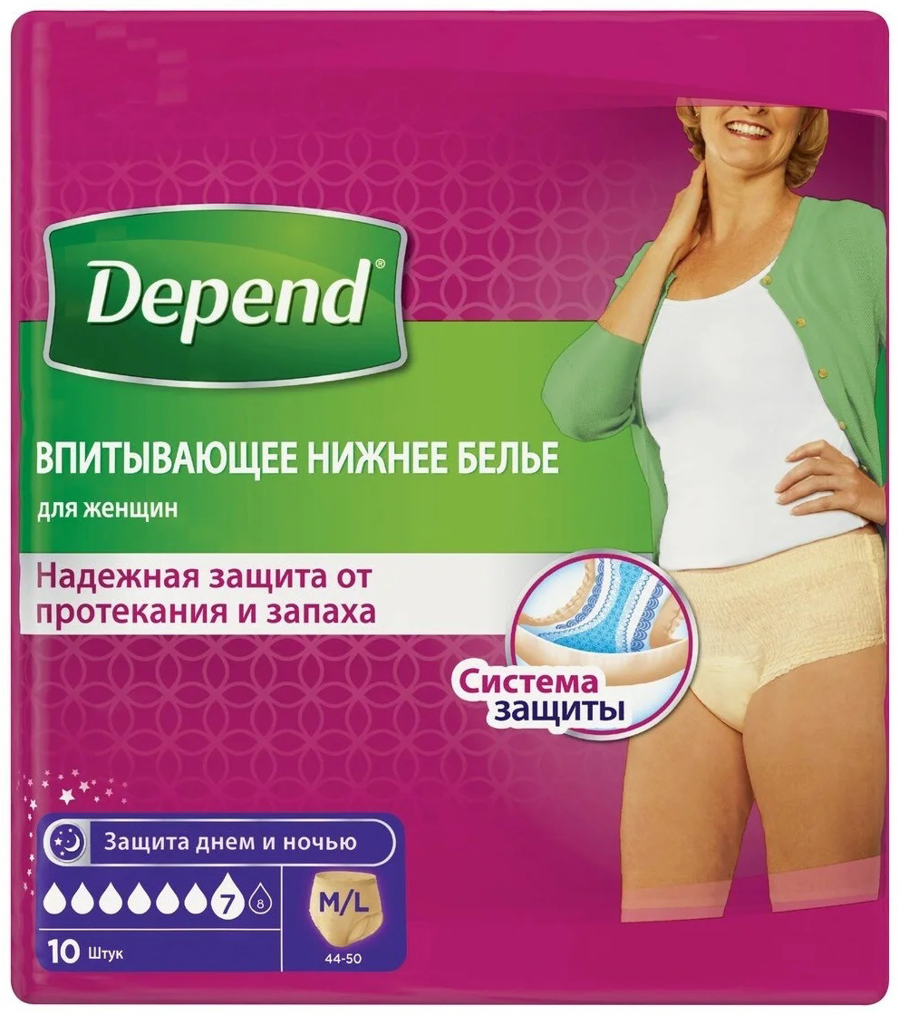 Бренд Depend - новое впитывающее белье создано с учетом анатомических особенностей тела. Надёжная защита от протекания и запаха.Комплектация:нижнее белье - 10 шт.