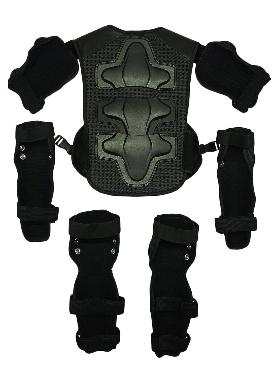 Комплект защиты для детей - налокотники, наколенники, защита груди и спины с наплечниками, размер S. Подходит для детей от 4 до 10 лет увлекающихся мотоспортом, ездой на квадроциклах, мотоциклах и питбайках.Размер S покупают детям от 4 до 8 лет ростом от