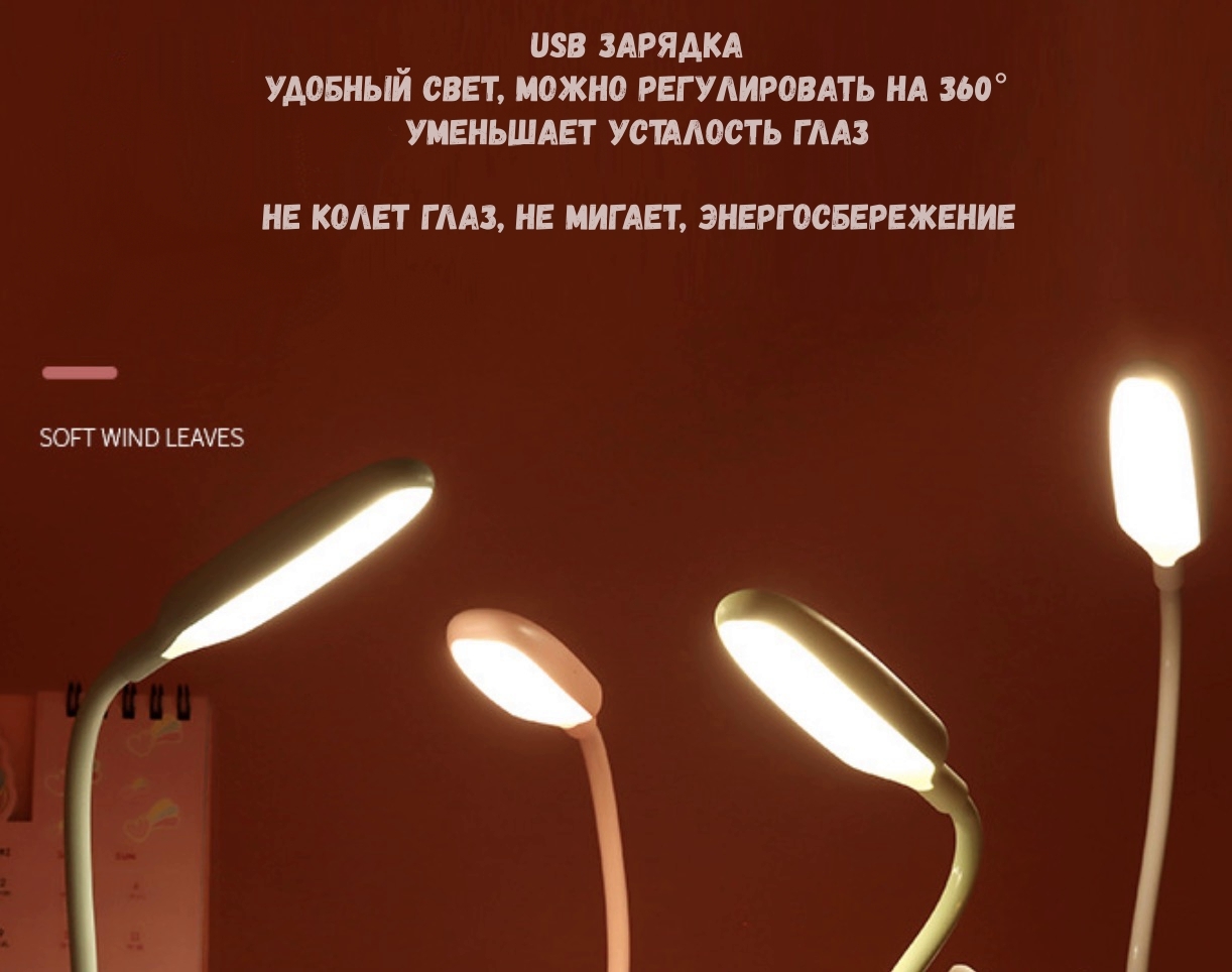 Перезаряжаемая переносная детская настольная лампа, можно использовать как ночник. Уменьшает усталость глаз. Не колет глаза, не мигает, энергосбережение.USB зарядка, удобный свет можно регулировать на 360°