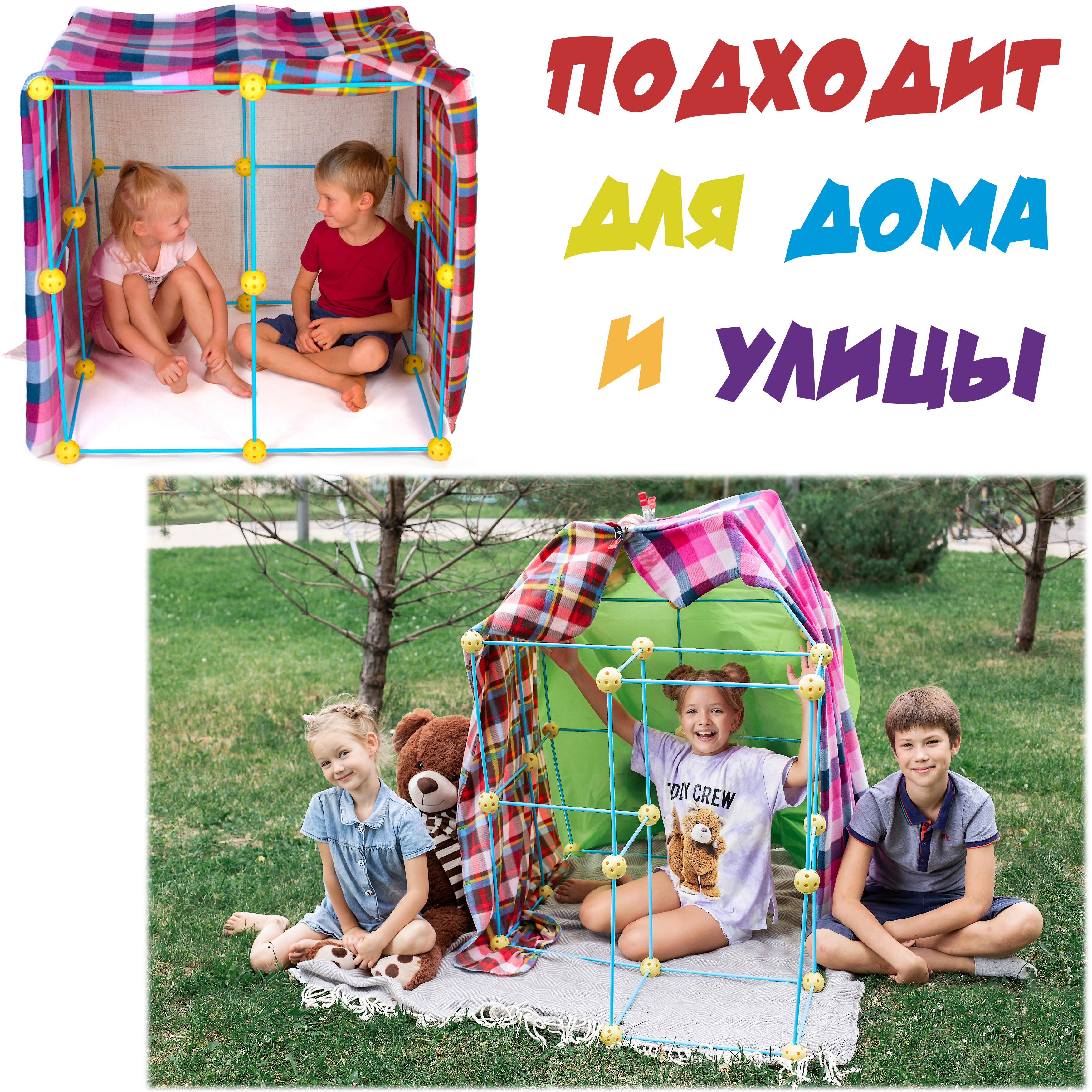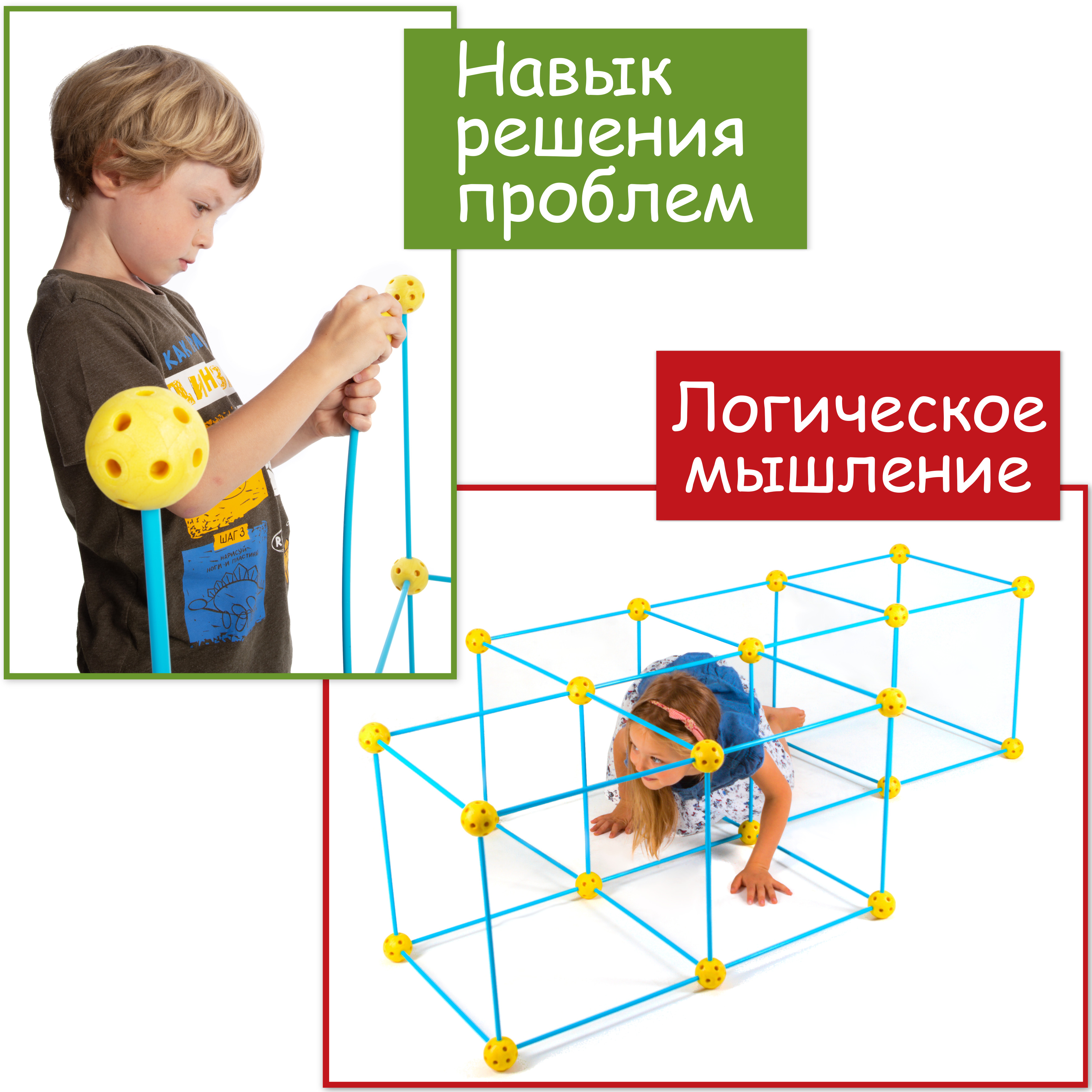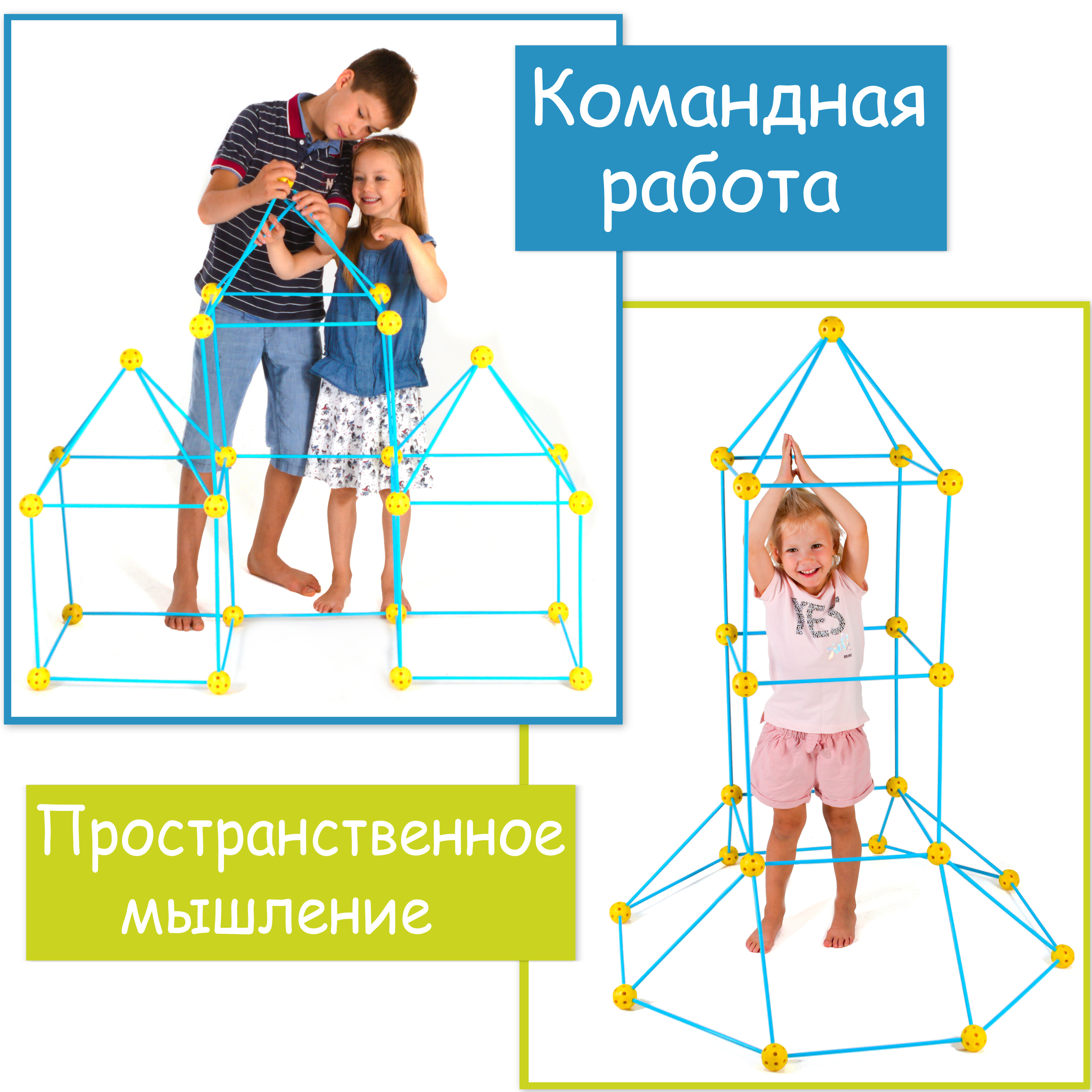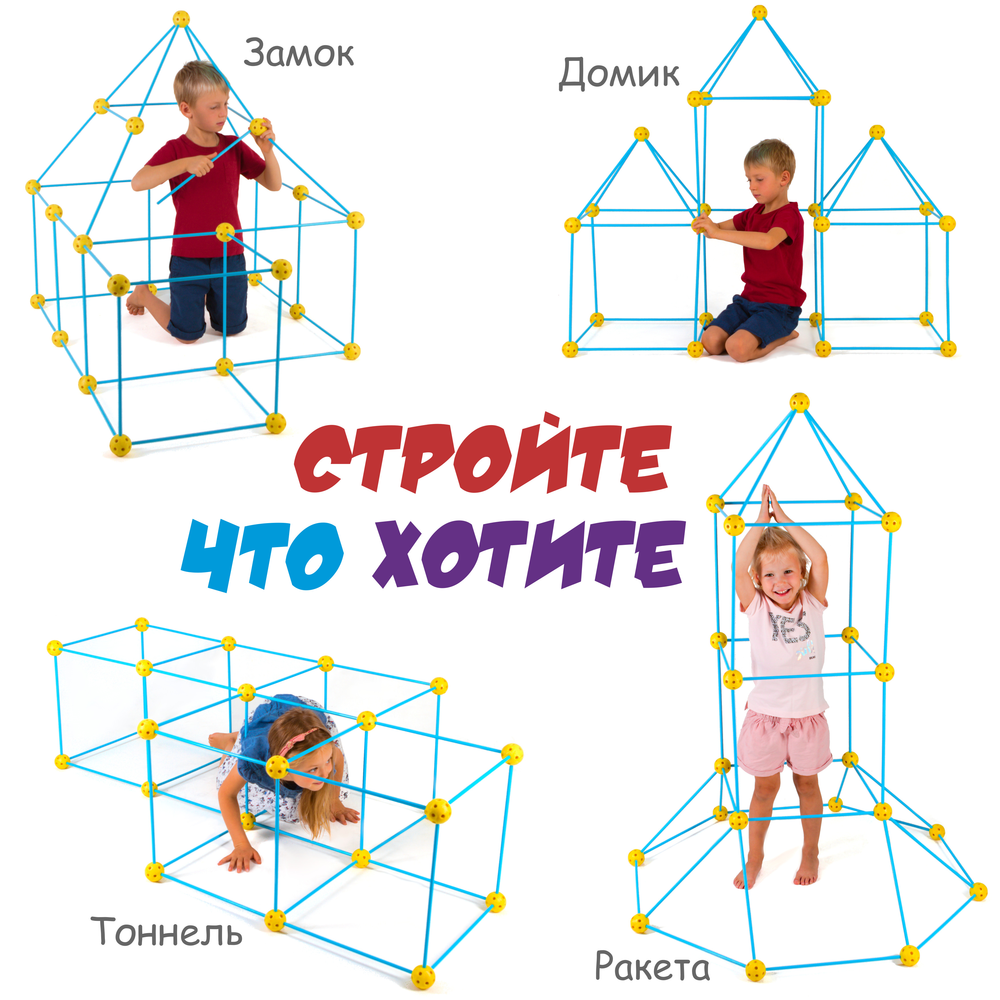 Новинка на рынке! Стройте самые разнообразные конструкции: шалаш, палатку, ракету, иглу, замок, тоннель и многое другое. Это самый прочный конструктор из подобных на рынке. Можно накрыть постройку легким покрывалом и не бояться что она развалится. Воплоща