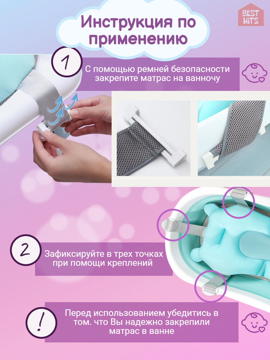 Детский матрасик, подушка, гамачок BEST HITS поможет родителям с купанием новорожденного / ребёнка / малыша в ванночке. БЕЗОПАСНО ДЛЯ НОВОРОЖДЕННЫХ!Лёжа на мягком матрасике, Ваш малыш / ребёнок будет чувствовать себя так же безопасно и расслабленно / комф
