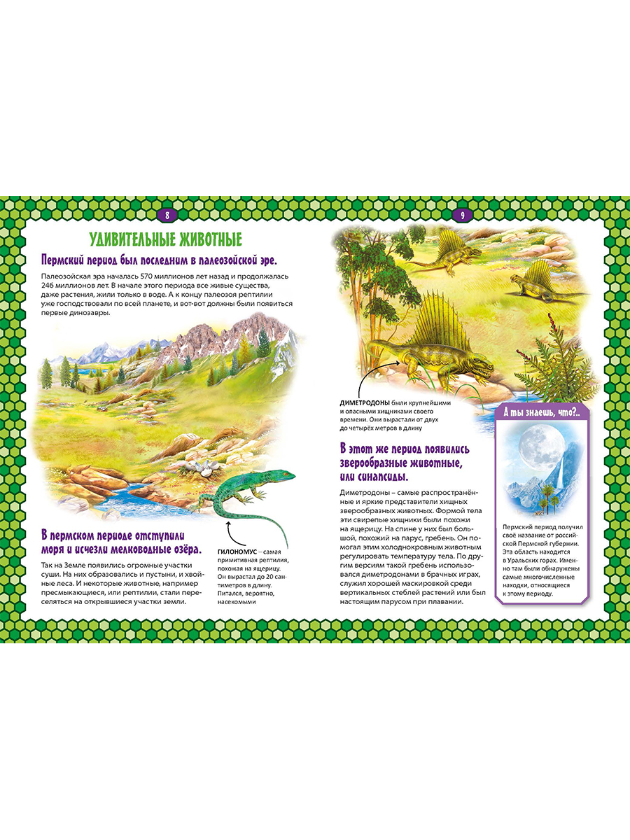 Комментарий:Дорогой друг! Давай отправимся в путешествие по удивительному миру древних ящеров, живших на нашей планете миллионы лет назад. На страницах нашей красочной энциклопедии ты узнаешь, что в давние времена на суше сначала обитали древние животные,