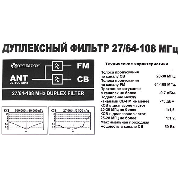 Optim Filter CB-FMДуплексный фильтр Optim Filter CB-FM позволяет подключить Вашу Си-Би рацию и автомобильный FM-приёмник к одной антенне.Дуплексёр Optim Filter CB-FM комплектуется всем необходимым для быстрого подключения устройства к антенне, магнитоле и