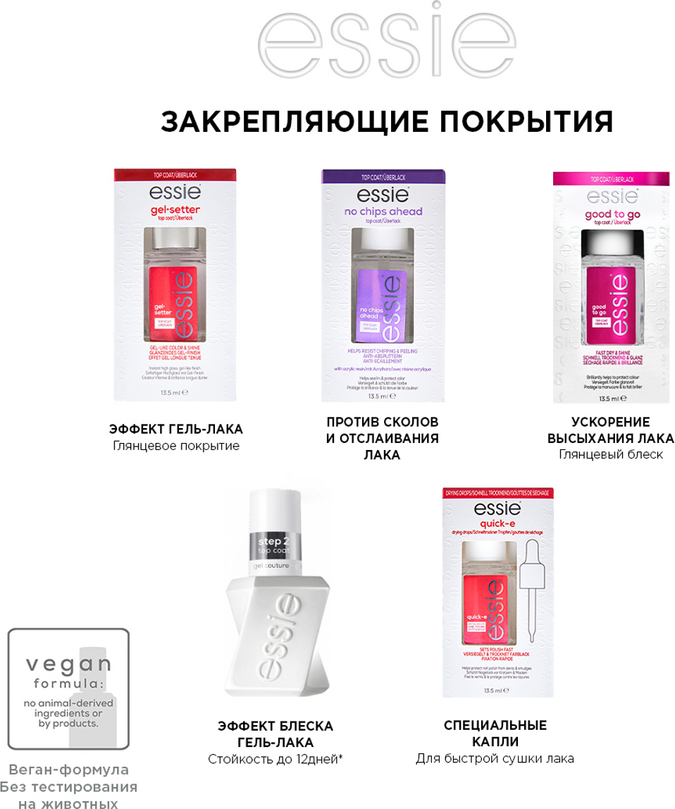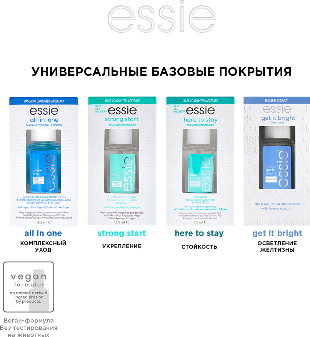 Способ применения:Нанесите лак для ногтей Essie на предварительно очищенную поверхность ногтей в один или два слоя.Состав:Ethyl acetate, butyl acetate, nitrocellulose, propyl acetate, isopropyl alcohol, tributyl citrate, tosylamide/epoxy resin, adipic aci