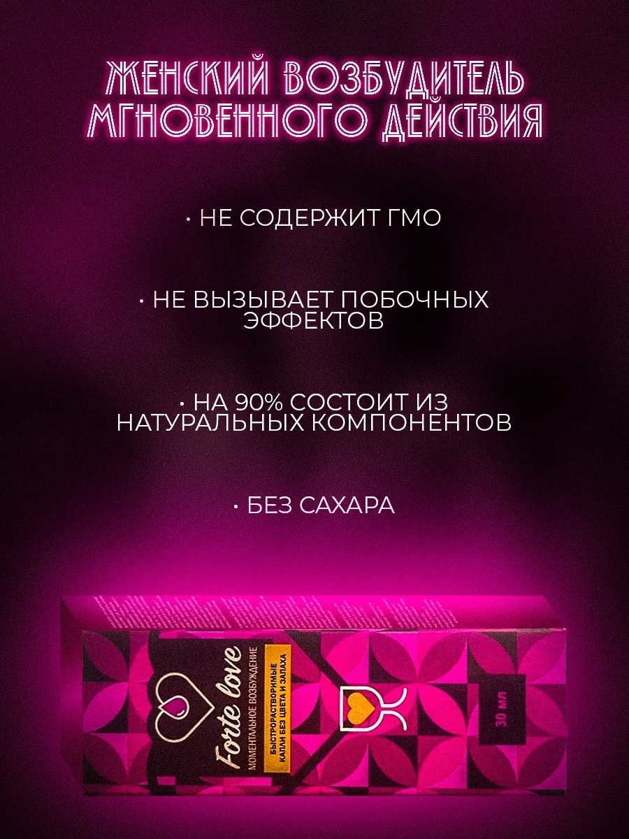 Состав:l-аргинин, анис, женьшень, дамиана, перуанская мака, дягильСпособ применения:Для повышения сексуального влечения, необходимо выпить 5-10 капель, растворив их в любом напитке за 15-20 мин. до предполагаемого полового акта. При климактерическом синдр