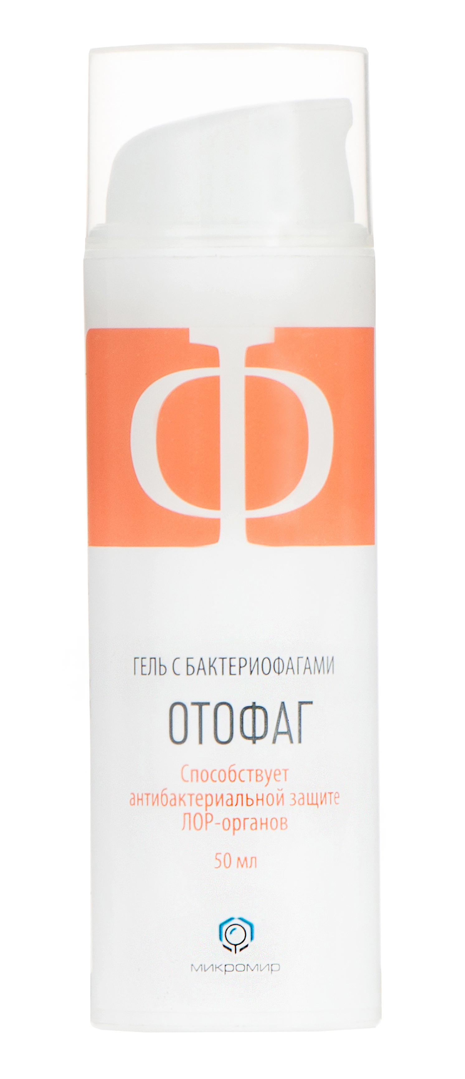 Гель с бактериофагами для гигиены ЛОР-органов «Отофаг» применяют с целью нормализации микрофлоры. Отофаг способствует предотвращению развития гнойно-воспалительных заболеваний бактериальной этиологии уха, горла и носа. Отофаг содержит комплекс из 72 видов