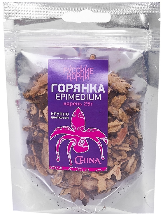 Условия хранения:В прохладном месте, вдали от прямых солнечных лучей и посторонних запахов.Состав:Горянка крупноцветковая 100%Описание:Корень горянки (эпимедиума) в Древнем Китае использовали в качестве эффективного усилителя мужской потенции. На самом де