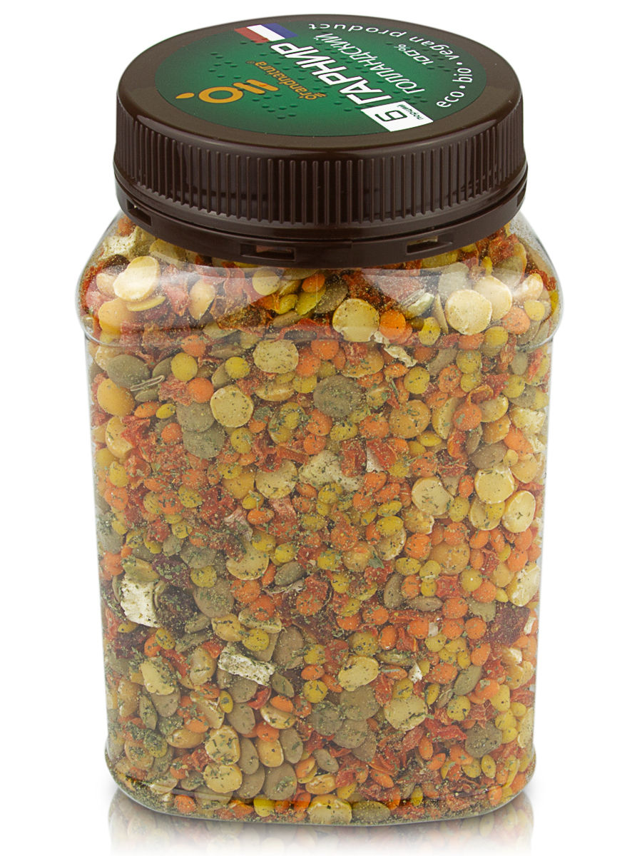 Состав:Горох, чечевица зелёная, чечевица красная, чечевица жёлтая, паприка, корень сельдерея, корень пастернака, корень петрушки, морковь сушеная, перец чёрный, тмин, петрушка, укроп, асафетида.Комплектация:1 пластиковая банкаУсловия хранения:Хранить в су