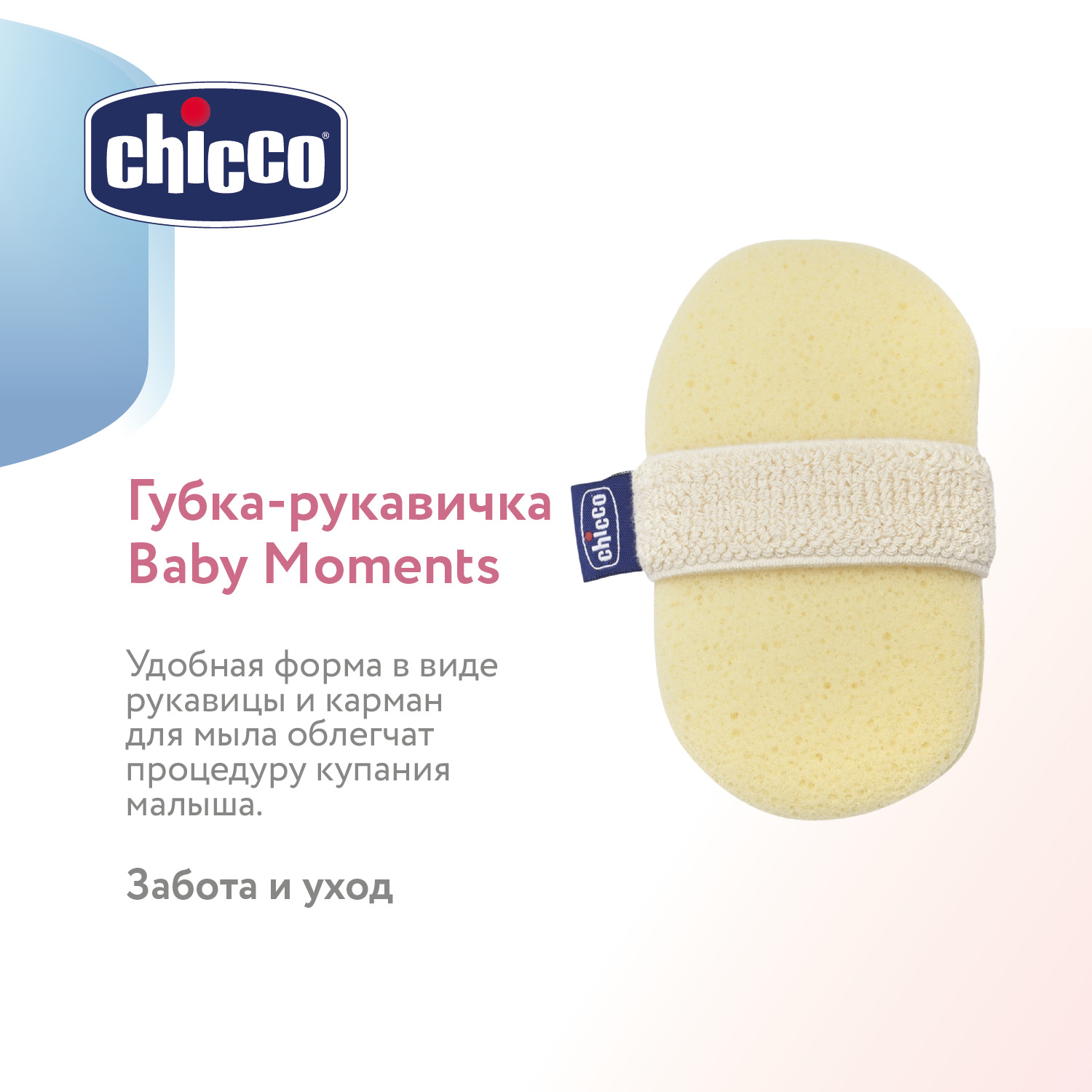 Губка-рукавичка Chicco Baby Moments выполнена в форме рукавицы для удобного, комфортного и безопасного купания малыша. Специальная эластичная вставка фиксирует руку мамы, что помогает одной рукой держать малыша, а второй купать.Выполнена из мягкого и нежн