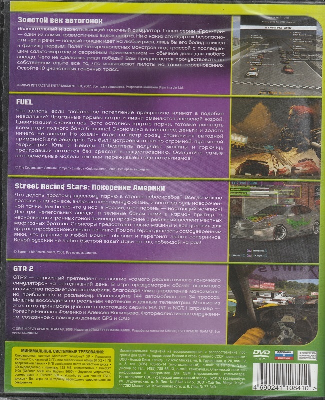 FUEL: Что делать, если глобальное потепление превратило климат в подобие неваляшки? Золотое издание Race включает в себя аддон Caterham, в котором вам предстоит управлять тремя автомобилями этого класса и опробовать две новые трассы. GTR 2: GTR2 – серьезн