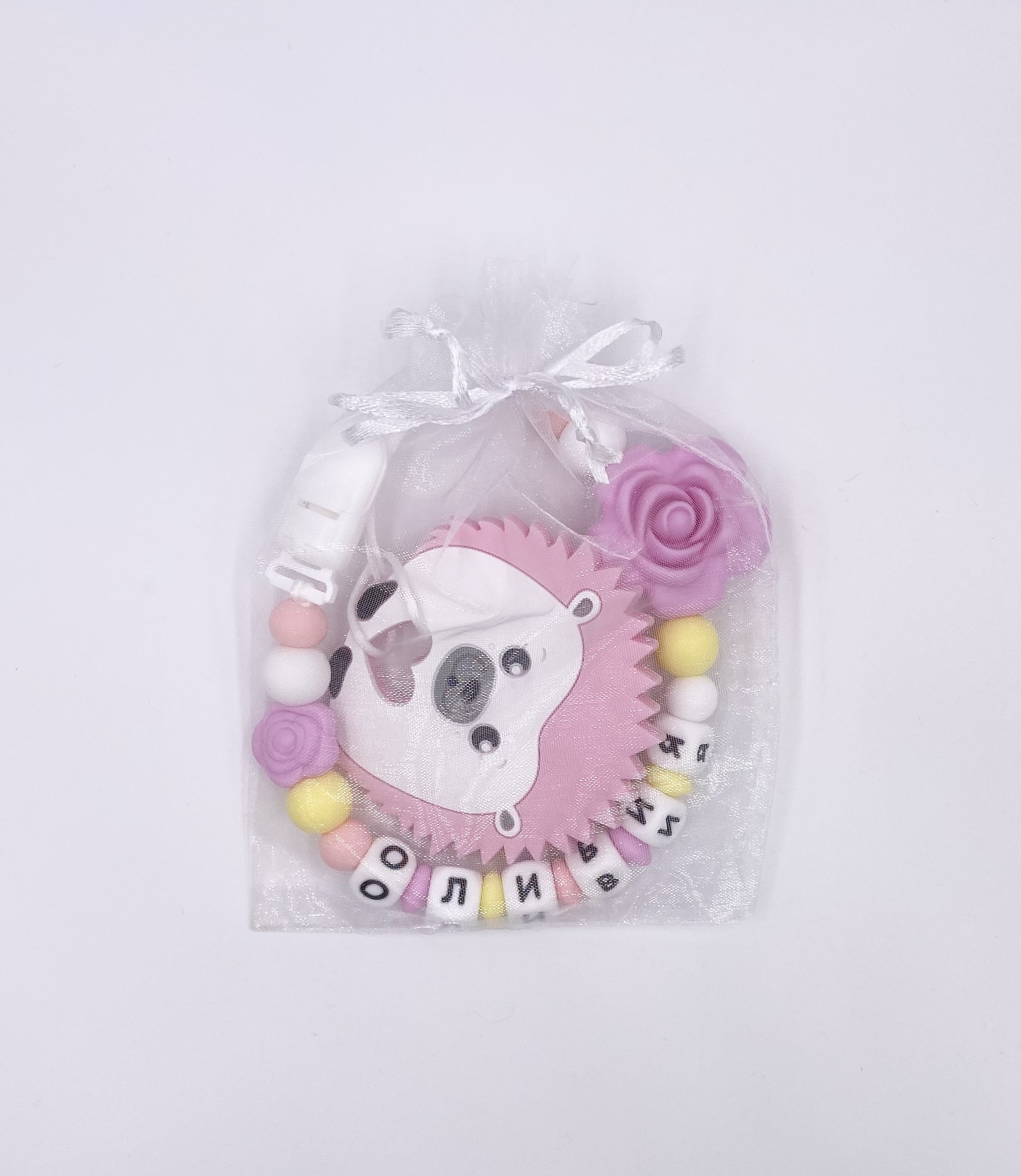 Держатель для пустышки с прорезывателем будет отличным помощником в непростой период для малыша и мамы! А также останется памятной вещью на долгие годы!Пищевой силикон нежный и приятный на ощупь, различные формы бусин будут не только нежно массировать дес