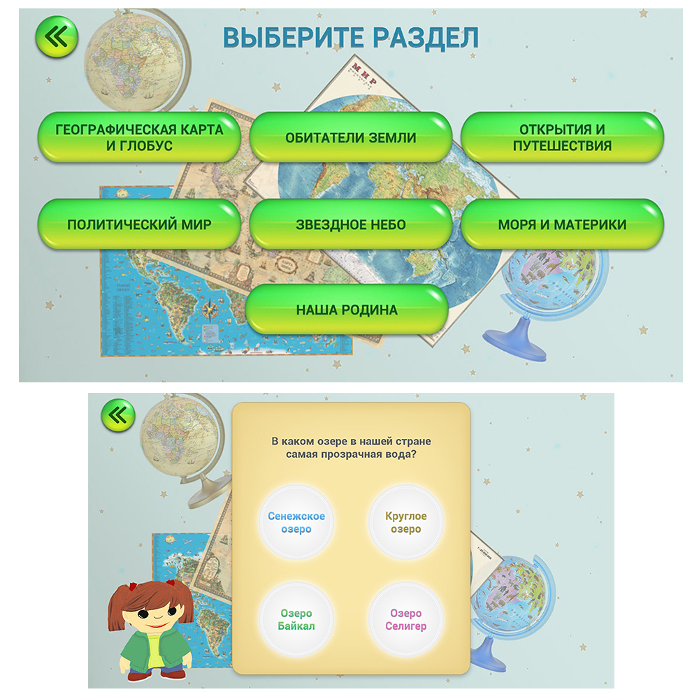 Интерактивная политико-административная карта Российской Федерации. Раздел в приложении: "Наша Родина". Мы предлагаем Вам отправиться в увлекательное путешествие по нашей Родине с известными персонажами Сашей и Машей. Наши герои будут сопровождать Вас на