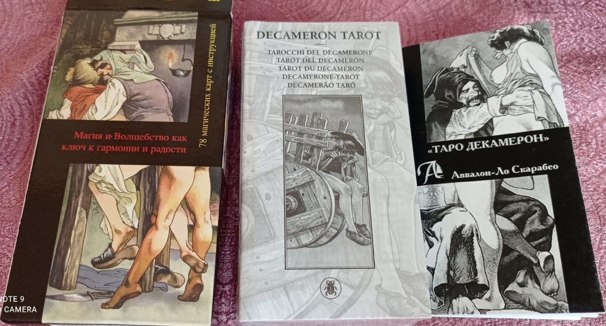 Декамерон - прекрасное, забавное, эротичное и очень откровенное Таро. В этой колоде, созданной талантливым итальянским живописцем Гиацинто Годензи, из патины времен восстают картины средневековья, наполненные любовной страстью, нежностью, ревностью и секс