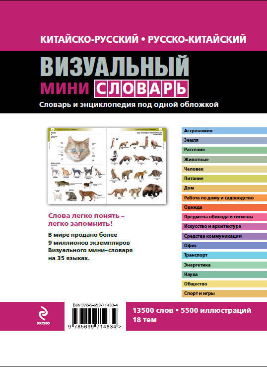 В Визуальном мини-словаре вы найдете детально прорисованные иллюстрации, подписи к которым сделаны на русском и китайском языке. Эта книга пригодится как тем, кто только начинает изучать язык, так и тем, кто работает с ним. Удобная тематическая структура