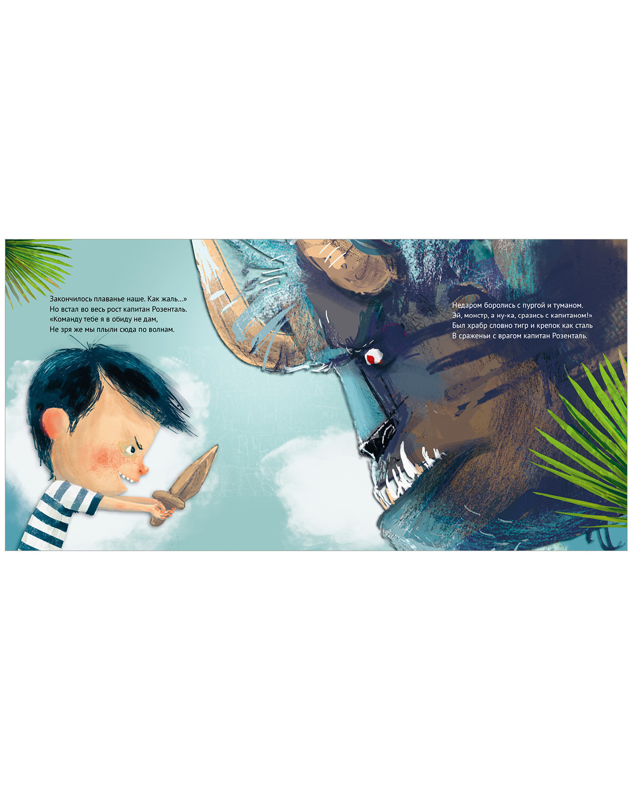 Книга «Чудище и капитан» в стихотворной форме расскажет о приключениях отважного мальчика Бориса Розенталя. Он всегда мечтал о путешествиях по морю, и вот однажды его желание осуществилось: к нему на огромном судне приплыли моряки и попросили стать их кап