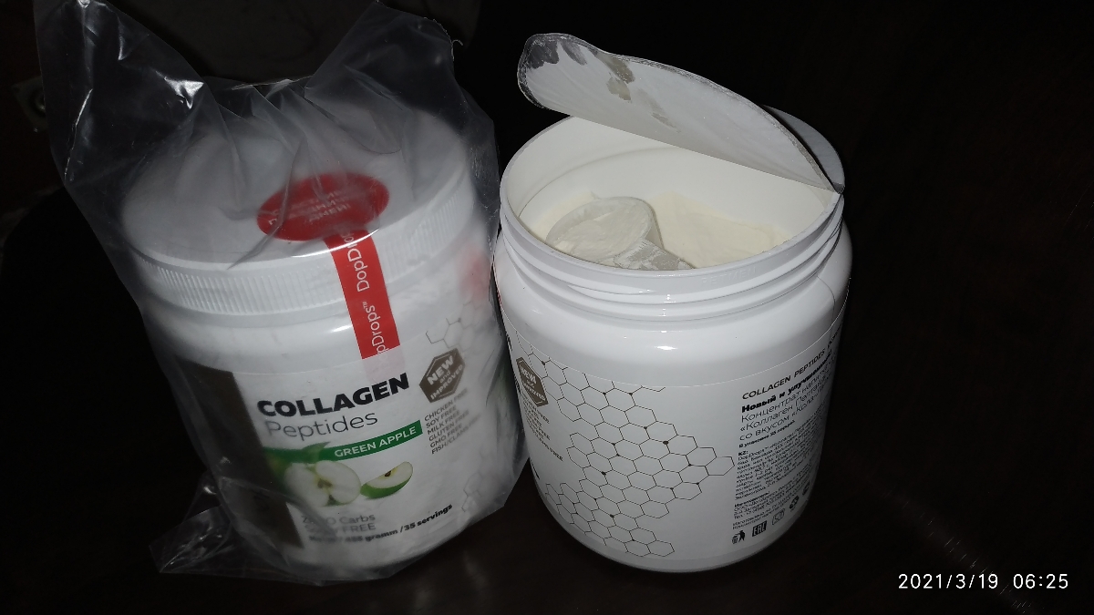 ПреимуществаПитьевой говяжий гидролизованный первого и третьего типа со вкусом Зеленого яблока без красителей в наиболее биологически доступной форме пептидов ( в порошке ).