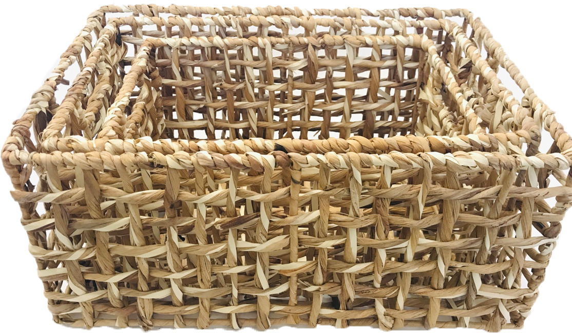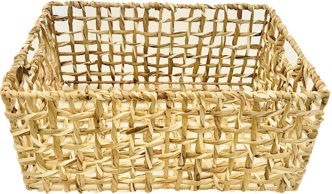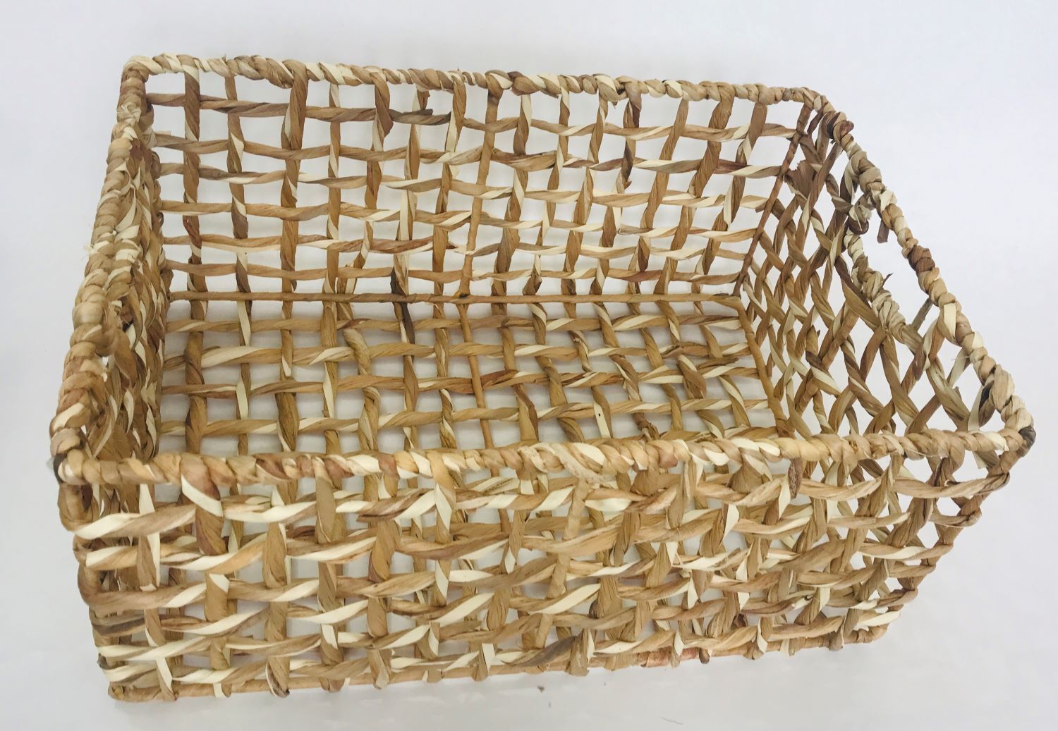 Комплектация:Прочный, стильный, удобный короб.Ткань, Гиацинт, пальмовый листОписание:Сделанная из экологически чистых натуральных материалов, эта корзинка впишется в интерьер вашего дома и кухни, и станет помощником в хранении, сервировке и оформлении люб